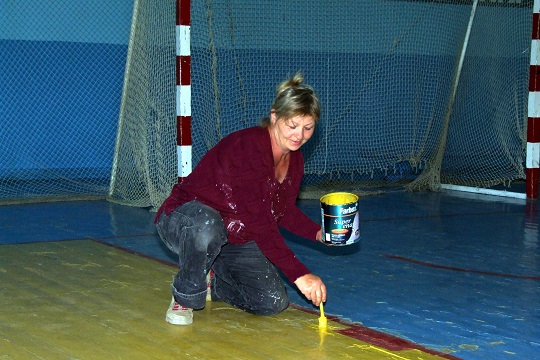 Короткий проміжок між літнім і осіннє-зимовим спортивними сезонами в нашому спортклубі присвятили ремонтним роботам, наведенню чистоти і підготовці клубної бази до нового періоду кипучого спортивного життя підприємства. На сторінках «Панорами «Азоту» ми вже розповідали про один з епізодів ремонту-2015 в СК «Промінь». Мова йшла про роботах по відновленню і оновленню величезних вікон великого спортзалу – одного з найважливіших приміщень клубу. Тоді, в липні поточного року, було зроблено чимало корисної роботи, але в даний час ремонт у спортклубі знаходиться, можна сказати, в активній фазі і з кожним днем наближається до своєї фінальної стадії. В даному випадку ми говоримо про роботи по оновленню вікон антресолей спортзалу та проведення в ньому фарбувальних робіт. Точно так само, як у свій час на першому ярусі, з вікон антресолей демонтовані захисні решітки, зняті з петель внутрішні віконні рами і всі їх дерев'яні частини очищені. Решітки і плетіння вікон незабаром будуть вкриті свіжою білою фарбою, а шибки вимиті до блиску. І поки вікна антресолей та захисні решітки чекають фарбування, наведення чистоти і фарбувальні роботи на підлозі спортзалу вже почалися. Кошти на придбання фарби для оновлення розмітки та фарбування підлоги спортзалу були своєчасно виділені профспілковим комітетом нашого підприємства. Так, завдяки турботі адміністрації і профкому «ДНІПРОАЗОТу», наш чудовий спортклуб, відзначив 50-річний ювілей, але як і раніше бадьорий і молодий, зустріне всіх любителів спорту чистими і оновленими приміщеннями для змагань і тренувань.